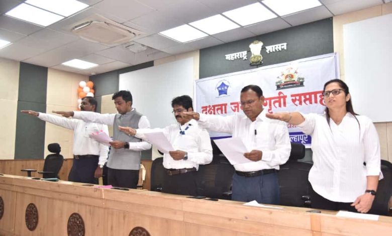 लाचलुचपत विभागाकडून जनजागृती मोहीम सुरु जिल्हाधिकाऱ्यांच्या उपास्थितीत अधिकारी आणि कर्मचारी यांनी भ्रष्टाचार निर्मूलनाची शपथ घेतली शपथ.