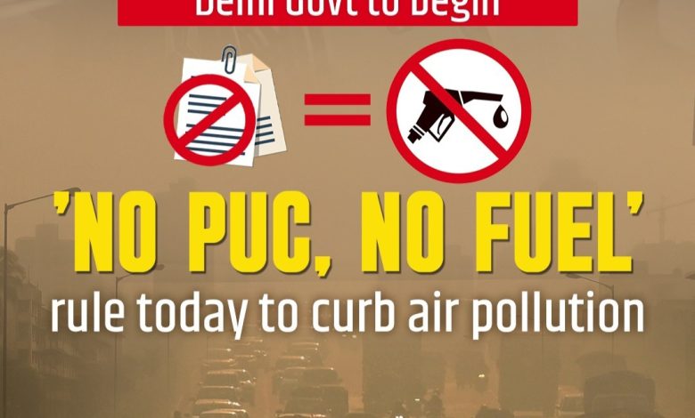वाढत्या वायूप्रदूषणाला आळा घालण्यासाठी “नो पीयूसी, नो फ्युएल” हा कठोर नियम आजपासून दिल्लीमध्ये कडकपणे राबवणार – प्रदूषण प्रमाणपत्र नसल्यास इंधन मिळणार नाही.